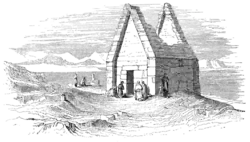 Saint Sinach Macdara, patron saint of seafarers, is believed to have built a wooden church on the island in the sixth century.[7] It was replaced by the present stone building in the 10th century.[8] The roof stones were cut to mimic wood shingles.[9]