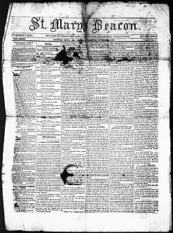 - ^ "St. Mary's Beacon". No. 9. Library of Congress. Chronicling America: Historic American Newspapers. April 23, 1863. Retrieved March 5, 2018.