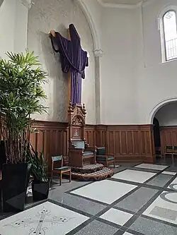 ![]() The cathedra of Archbishop Murray Chatlain, 8th Archbishop of Winnipeg. The Cross is covered because this picture was taken on Holy Saturday. | |
