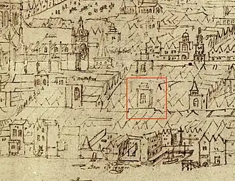 According to John Stow, in 1370, the Brabant weaver community was ordered by the Mayor to meet in the churchyard of St Mary Somerset for the purpose of hiring serving men, following disputes with the Flemish weavers. The latter were ordered to meet a safe distance away in the churchyard of St Laurence Pountney.