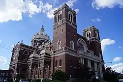 Like a number of other Polish churches in the so-called Polish Cathedral style such as St. Josaphat's Basilica in Milwaukee or Immaculate Heart of Mary in Pittsburgh, the architectural firm of Worthmann and Steinbach modeled the church's design on St. Peter's Basilica in Rome.[1] It has been acclaimed as one of the finest specimens of Roman Renaissance architecture in the United States. The imposing brick edifice with its twin bell towers and magnificent dome was constructed at a cost of $400,000—a testament to the zeal of Father Gordon and to the generosity of parishioners.