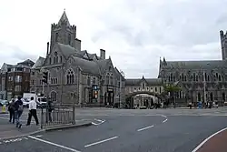 A chapel was originally erected by Donat, Archbishop of Dublin, in 1076, which was converted into a parish church by Archbishop Richard Talbot in 1417. It was used by the Corporation of Shoe-makers, a guild. It was situated in High Street, at the corner of Christ Church lane, immediately opposite the western end of the cathedral, where the former Synod Hall now stands. In 1554 St. Michael's was one of three Prebends in Christ Church set up by Archbishop Browne.[1]
