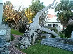 The graveyard which surrounds the church has been filled for decades, all new burials taking place in the municipal graveyard on the far shore to the north of the town. Notable exceptions were Governor Sir Richard Sharples and his aide-de-camp, Captain Hugh Sayers, who were buried side by side in the east of the churchyard after their 1973 murders. An area of the yard to the west of the church was reserved for burying slaves, prior to the 1834 emancipation of slaves throughout the British Empire.