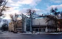 The main building, designed in 1952 by architect V. I. Kuznetsov, is at the corner of Moskovsky prospect and Fontanka embankment.