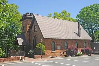 Key Memorial Chapel, formerly the parish church of Saint Philip the Apostle, is a historic Catholic chapel located at 150 E. Sharpe Street in Statesville, Iredell County, North Carolina. It is within the Diocese of Charlotte. It was built in 1898, and is a small one-story, two bay by four bay, Late Gothic Revival-style brick building. It features a large, pointed arch stained glass window and a two-story tower with crenellated parapet. It was abandoned by 1976 when the parish was moved to its current location in Statesville, and the chapel was adaptively reused as a law office.[2]