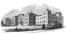 The facility was founded by public subscription for "private and pauper lunatics" and opened as the Northampton General Lunatic Asylum on 1 August 1838.[1] Thomas Octavius Prichard was appointed as the hospital's first medical superintendent: he was one of the pioneers of "moral management", the humane treatment of the mentally ill.[2] The chapel was designed by Sir George Gilbert Scott and opened in 1863.[3]