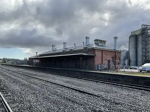 St Arnaud is a closed railway station on the Mildura railway line,[1] in St Arnaud, Victoria, Australia. It is 255 km from Southern Cross station. The station contains grain silos and a number of sidings. The heritage listed building was reopened as a repurposed public Gallery and Community Hub in September, 2019.