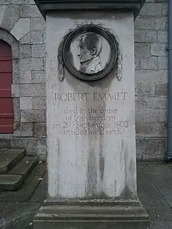 In 1803 the church was the site of Robert Emmet's execution - and a plaque commemorating this remains today.[8]