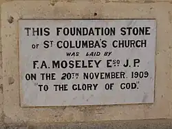 Construction began on 20 November 1909, when the first stone was laid by F. A. Moseley.