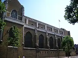 St George's Cathedral is on the north side and the Imperial War Museum and the surrounding Geraldine Mary Harmsworth Park is on the south side opposite, at the junction with Lambeth Road (A3203). On the west side at this junction is the former Royal South London Dispensary, listed under its subsequent name of the Elizabeth Baxter Hostel.[2] It is now the School of Historical Dress.[3] It was during the refurbishment of the building as the School of Historical Dress that the lettering for the Dispensary was revealed. The London College of Communication is at the Elephant and Castle end of the road.