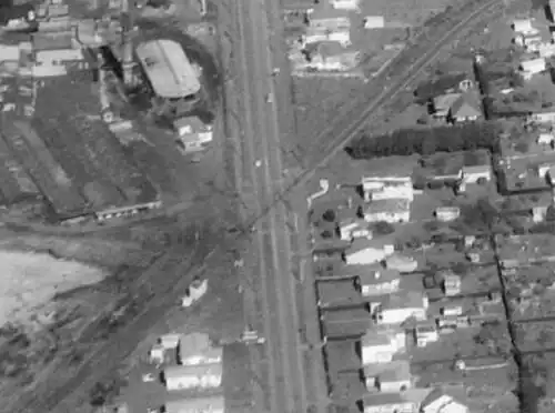 ![]() Aerial view of St George's Street railway station in 1968 (bottom-left), near the intersection between Saint George's Road and the Western Line | |||||