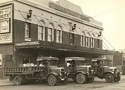 Initially, the new St George County Council held its meetings at the council chambers of the Kogarah Municipal Council.[45] In mid 1922 land was resumed in Montgomery Street, Kogarah, where the first building housing the new county council was later constructed.[37] The foundation stone of the building was laid in September 1922.[45]