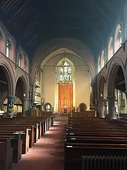 The foundation stone was laid on 8 July 1887 by Henry Smith Wright MP[2] The parish was carved out of that of St Saviours in the Meadows, Nottingham. The nave of the church was consecrated on 12 June 1888[3] by the Rt. Revd. Dr. Edward Trollope, Bishop of Nottingham, acting for the Bishop of Southwell. The nave was designed by Richard Charles Sutton.