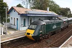 St Germans railway station (Cornish: Lannaled) serves the village of St Germans in Cornwall, England. The station is managed by Great Western Railway and is situated on the Cornish Main Line 10 miles 33 chains (16.8 km) from the line's northern terminus of Plymouth[1] and 256 miles 28 chains (412.6 km) from London Paddington via Box and Plymouth Millbay.[2] To the east of the station, the thirteen arch stone viaduct of 1908 (which replaced the original timber one built in 1859) takes the railway over the River Tiddy.[3]