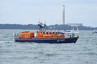 - ^ Waveney-class lifeboat, built by Groves and Guttridge. Twin General Motors engines, each developing 260 hp, giving 14 knots, and costing £100,000.