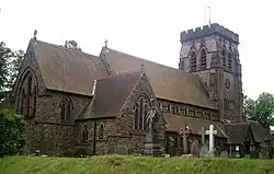 The first church on the site was consecrated in 1824. Following this the population grew and the church became too small. In 1873 it was decided that a new and larger church was needed. The new church was designed by John Douglas. The foundation stone was laid on 29 October 1873. The new church was consecrated by William Jacobson, Bishop of Chester, on 24 June 1875. At this time, the church consisted of the chancel and nave with its porches and the foundations of the tower. The tower, also designed by John Douglas, was then added and this was dedicated by William Stubbs, Bishop of Chester, on 14 April 1887. On 20 June 1897 a ring of six bells was dedicated. The total cost of the church was £12,508 (£1.79 million in 2023).[4] In the 1920s a choir vestry was added to the east wall. In 1990 the church pipe organ was replaced by an electronic organ. In 1993 the roof was refurbished and during the following year the pews were replaced by chairs.[5] In 1997–98 an extension was added to the west end of the church to provide extra seating, toilets and a kitchen.[6]