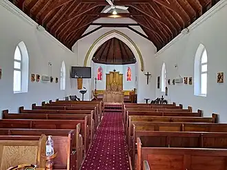 The cathedral building was built in 1887 of rough stone as a Missions church but was upgraded to a Parish church in 1948[2] and, with a maximum seating capacity of 130, is the smallest[3] cathedral in Australia.[1]