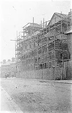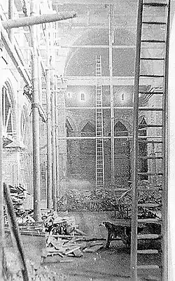 In 1902, Fr Francis O'Farrell came to Aldershot and set about collecting funds to build a permanent church. After 10 years, enough money was collected, building work started and the foundation stone was laid by the Bishop of Portsmouth, William Cotter, on 12 March 1912. The church was designed by George Drysdale. The temporary iron church that was previously on the site was dismantled and reassembled on Belle Vue Road to become St Mary's Church. On 30 January 1913, St Joseph's Church was opened.[3]