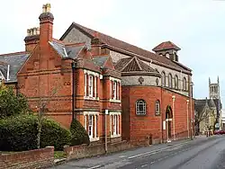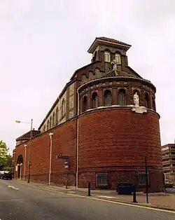 St Joseph's Church is a Roman Catholic Parish church in Aldershot, Hampshire. Built in 1913, it is situated at the top of a ridge on Queens Road, overlooking the town centre, between the Municipal Gardens and Princes Hall. It is a Grade II listed building.[1] Sir Nikolaus Pevsner described it as 'One of the most impressive churches of its date, brilliantly planned on a triangular site.'[3]