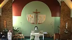 St Laurence's is a modern church, built in brick and with an open layout so that all parts of the church can see the altar area.