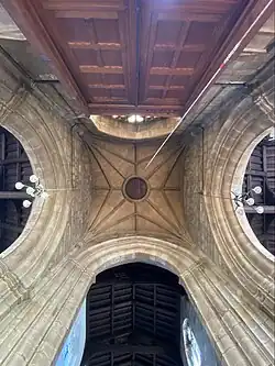 Sometime in the early the aisles were widened out to the ends of the 12th century transepts, their current width.[11] The south door and the south arcades of the nave date to this period. It is also considered that the jambs of the south door and the door itself, including its sanctuary knocker, date to this phase of construction.[16] The excavated well at the east end of the north aisle also dates to this period and was probable used during the construction process. This theory is founded on the fact that the refuse used to fill in the well dates to the early 13th century.[16] The arcade of the south aisle bears a number of remarkable naturalistic decorative carvings most likely dating to this stage of construction. Appropriate to the status of the south aisle as a Lady Chapel, a dedication that continues until today, these are carvings of lily's and roses, motifs associated with the Blessed Virgin Mary who is often referred to by the title Rosa Mystica.[16]