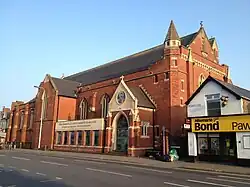 Erected to serve what was then a growing suburb, the church was founded as a tin tabernacle in 1886.[1] The present building replaced it in 1901, and the church became a separate parish in 1903. Its original lady chapel was decorated by a Belgian refugee artist in gratitude for the kindness shown by the parishioners during the First World War.