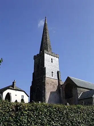 Although some parts of the church are 14th century,[2] the south aisle is 15th century. A rector was recorded in 1308 and the reconstruction of the church was dedicated in 1336 by Bishop John Grandisson.[1] The building also underwent extensive renovation in the 19th century.[2]