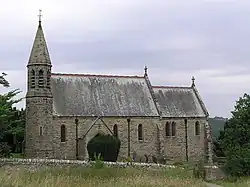 The church is built of sandstone with a Welsh slate roof. It consists of a nave, a south porch, a chancel with a north vestry, and a southwest octagonal steeple. Over the doorway is a carved head, and inside the porch are three medieval grave covers. The east window has three trefoiled lights and a sexfoil above, and the other windows are lancets. Inside, there are a piscina and stoup from the Mediaeval church, while there is an arch-braced king post roof.[2][5][6] As part of the conversion to a hostel, a mezzanine floor was inserted.[7]
