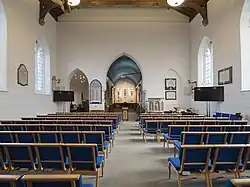 In 1938 electricity replaced the gas lamps, the organ pipes were placed in the gallery, and pumped by electricity, and the organ console enlarged.[2]