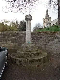 Outside the church's south gate is a former market cross thought to be of 17th-century origin which was relocated here in 1911. Like the church the cross is of magnesian limestone. The cross has two circular steps and a stone pedestal and octagonal plinth. There is a lettered brass plaque claiming the cross was removed during the plague in 1644 and restored and relocated to commemorate the coronation of King George V in 1911.[6]