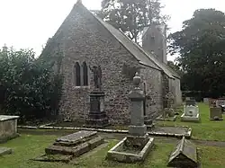 An 1879 newspaper story relates there was extensive restoration done to the chancel and the churchyard wall. The story also mentions that the church nave was restored and fitted with new seats 26 years prior to the work done in 1879.[5] The church is described as having a main door dated 1674 with furnishings dating mainly from the Victorian era to the mid 1920s. Fragments of wall paintings were discovered in 1969.[1][4] The cross in the churchyard became a Grade II listed building on 30 April 2004.[6]