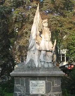 A replica made in 1965 can be viewed in the Kurpie museum in Nowogród. The Stach Konwa monument, by Gervase Lórinczego, was erected in 1958 in Łomża on the occasion of the city’s 1000th anniversary. On the monument, the statue of Konwa faces east with his fist raised in that direction, perceived as an expression of opposition to Soviet domination.[4]