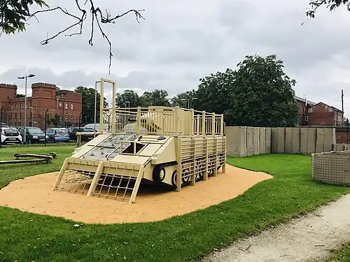 In 2019, the museum opened a military-style adventure playground. Named Camp Fisher, the centrepiece of the playground is a life-size Warrior tracked armoured vehicle play feature, set within a mock-Forward Operating Base based on the recent Afghanistan war. It is dedicated to WO2 Ian Fisher who was killed on operations in Afghanistan whilst serving with the 3rd Battalion the Mercian Regiment in 2013.[17]