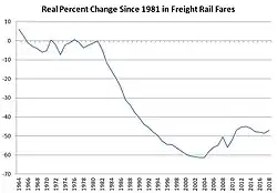 - ^ a b Association of American Railroads, Washington, D.C. (2011). "The Impact of the Staggers Rail Act of 1980."