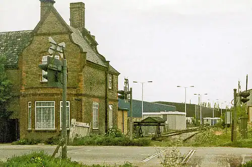 On 24 June 1964, Shell-Mex and BP opened a rail terminal for heating oil on the site of the former Staines West goods yard.[24] The depot, served by a single siding capable of holding up to 12 tank wagons,[3] was served by 2-6 trains per week, depending on the season.[25] Initially steam engines were used to haul oil trains, but were replaced by diesel locomotives after the first few months.[26] The construction of the M25 across the trackbed at Poyle, meant that terminal could no longer be served by trains running via Colnbrook.[3] A link from the Staines–Windsor line opened in January 1981, thereby allowing continued rail access into the depot.[27] Staines oil depot closed on 24 June 1991.[3]