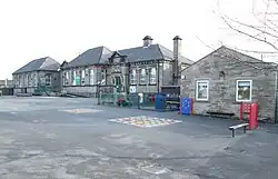 Bowling Green Primary School is on Bowling Green Road and is under the local authority of Calderdale Council.[11] The first school on the site was built by the local overseer of the poor in 1805.[12] The present school building, built on the former bowling green and designed by John Leeming (1849–1931) of Halifax,[13] was opened by the School Board on 24 February 1882, its two foundation stones being dated 1 October 1881.[14] The foundation stones were laid by John Mellor and Thomas Carter, the chairman and vice chairman of the School Board. Local ratepayers funded their silver trowels for the ceremony. Joseph Stott, a board member, gave a speech saying that "he believed there was a necessity for additional means of instruction," before hundreds of people were given tea in the local Sunday school room.[13]