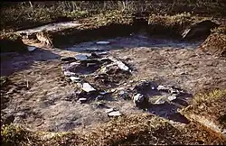 On account of the identification of relics of ancient buildings with the 'stallo' in the southern part of the Sámi area of Sweden, archaeologists have come to refer to such relics as 'stallo sites' generally, following the lead of Ernst Manker's 1960 study Fångstgropar och stalotomter ('hunting pits and stallo sites'). Such buildings are actually round or oval, with a diameter of four to six metres, arranged linearly in groups of two to eight (or, more rarely, more, up to fifteen). Around sixty such sites are known, distributed along what is now the Norway-Sweden border, from Frostviken in Jämtland county to the south, to Devddesvuopmi in Troms to the north. They are found above the tree line, at heights between 550 and 850 metres. They seem to have been in most extensive use around 800–1050 CE, that is, during the Viking Age. Scholars agree that these were temporary dwellings, probably for use in the warmer months, and that they reflect a change in the economic habits of their users, almost certainly associated with hunting or herding reindeer. Nevertheless, there is extensive debate over whether the inhabitants were ethnically Norse or Sámi, where their permanent habitations were located, and their purpose. As of 2014, debate was ongoing, but opinion at that time favoured the idea that the stallo sites were used by Sámi people, partly because the layout of the buildings corresponds to later Sámi dwellings.[3]
