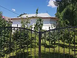 The church is trefoil shaped, with narthex, nave and altar. A row of bricks above the windows divides the facades into two horizontal registers. A fragment of the 18th-century wall survives to the east.[1] The church and wall are listed as historic monuments by Romania's Ministry of Culture and Religious Affairs.[2]