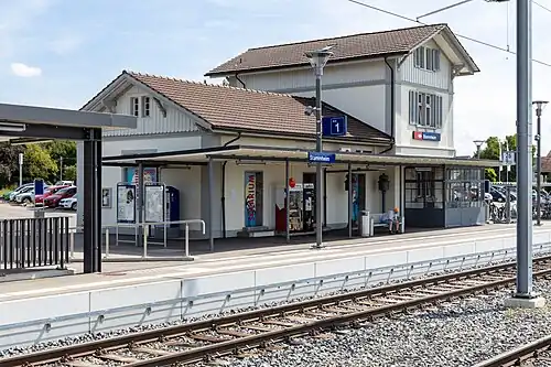 Stammheim is a railway station in the Swiss canton of Zurich and municipality of Unterstammheim. The station is located on the Winterthur to Etzwilen line.[4] It lies within both fare zone 162 of the Zürcher Verkehrsverbund (ZVV),[2] and fare zone 959 of the Ostwind fare network.[3]