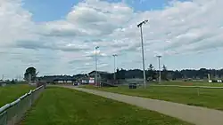 The scope and funding was the largest of its type, as well as for a city the size of Chehalis, at the time.[8] Despite help in constructing six ballfields from an engineering battalion of the Washington National Guard in 1973,[11] the park struggled to meet its timeline by the summer of 1974, due to issues of a lack of resources and city help in finishing the ballfields.[12] By mid-1974, light poles had been installed and the concession stand was finished,[13] and the fields were used of the 1974 Babe Ruth league state tournament.[14] Stan Hedwall Park was considered fully open in 1975, notwithstanding concerns over a lack of funding and deletion of proposed amenities,[15] and Chehalis residents were credited with raising $117,000 to help fund the completion of the park.[16]