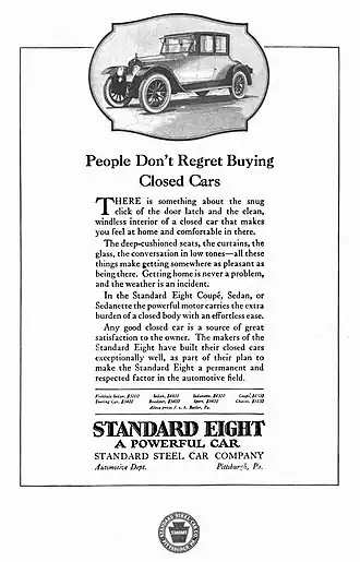 The Standard Steel Car Company (SSC) was a manufacturer of railroad rolling stock in the United States that existed between 1902 and 1934.