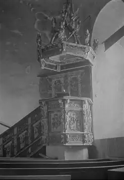 On 17 July 1620, the church was struck by lightning and it burned the roof and most of the interior furnishings. Thus, the medieval interior was destroyed, and much of what we see today is a baroque interior from the 17th century and early 18th century. The church was rebuilt quickly after the fire and a small tower was built on the roof of the nave. In 1703, a large transept extension was added to the north of the nave so that the church has been given a kind of T-shape or a partial cruciform design. The new wing is referred as the New Church (Norwegian: Nykirken). In 1772, the tower was rebuilt with a much taller and larger tower. It is said to be Norway's tallest cantilevered wooden construction for that time period.[3][4]