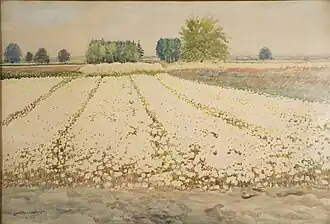 Soon he returned to landscape painting. Works of this final period was uneven. The most outstanding works of this time include watercolor paintings from a trip to Italy in 1922[30] and some landscapes of Wola Rafałowska village, such as a few from the year 1924: "Ule" (en. The Beehives – the Silesian Museum in Katowice), "Gryka" (en. The Field of Buckwheat) and "Łubin" (en. The Field of Yellow Lupin – National Museum in Warsaw).[31][32]