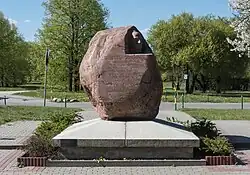 The Stanisław Staszic Memorial (Polish: Pomnik Stanisława Staszica) is a memorial in Warsaw, Poland, placed at the campus of the Warsaw University of Life Sciences, at 159 Nowoursynowska Street, in the neighbourhood of Stary Służew within the district of Ursynów. It is dedicated to Stanisław Staszic, a leading figure of the Polish Enlightenment in the 18th century, a writer, activist, geologist and geographer. The monument consists of a bust carved into a side of a large rock. It was made by sculptor Stanisław Lipski and unveiled in 1976 in front of the Primate Palace at 13/15 Senatorska Street, before being moved to its current location in 2007.