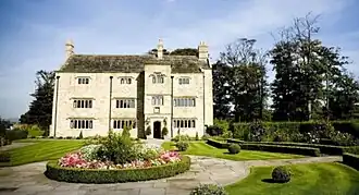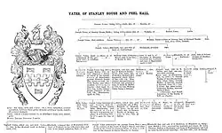 By about 1788 the property was purchased by Henry Sudell, and in 1796 he built Woodfold Hall to the south-west of Stanley House. This hall then became the main manor house of Mello, and Stanley House became a farm and was occupied from then by tenant farmers. Sudell became bankrupt in 1827 and was forced to sell the whole estate in 1831.[9] It was bought by John Fowden Hindle (1757–1831), who died shortly after he purchased the house. It was inherited by his eldest son, John Fowden Hindle. He had no children, so when he died in 1849 it was passed to his younger brother William Fowden Hindle. On his death in 1853 his daughter Mary Jane Hindle became the owner.[10] She had previously married George Frederick Gregory. At about this time a travel directory of Lancashire made the observation that "Stanley House, though now the homestead of a farmer, still retains traces of its former splendour."[11] In 1878 the sister of George Frederick Gregory, Eliza Amelia, and her husband Daniel Thwaites bought the estate. Daniel Thwaites was a wealthy brewer and politician. He was the son of the founder of the present Thwaites Brewery in Blackburn. He made major improvements to the estate including repairs to Stanley House. After he died in 1888 his only child Elma Amy Thwaites inherited the property. She married Robert Yerburgh, and the couple had two sons. Their eldest son, Robert Yerburgh, who later became 1st Baron Alvingham, inherited the house; and when he died in 1955 his son Robert Guy Eardley Yerburgh (1926–2020), 2nd Baron Alvingham, became the owner. In 1999 the house was purchased by Leehand Leisure Ltd, and restoration of the now derelict building commenced.