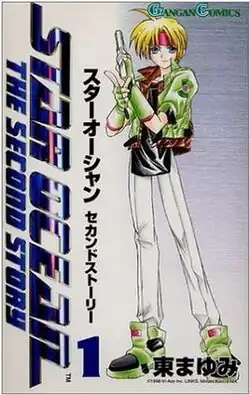 Star Ocean: The Second Story (スターオーシャン セカンドストーリー, Sutā Ōshan Sekando Sutōrī) is a seven volume manga series written and illustrated by Mayumi Azuma. Based on the tri-Ace role-playing video game of the same name, it follows the exploits of Claude C. Kenny, a young ensign in the Earth Federation who finds himself stranded on the Planet Expel. He meets Rena Lanford, a young girl living in the village of Arlia who declares that he is the legendary warrior their legends speak of who will save their troubled world from disaster. The series was serialized in Monthly Shōnen Gangan from 1998 to 1999.