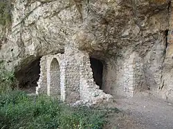 The cave monastery of St. Michael (where Monk Simeon was later active and wrote Vukan's Gospel dated to c. 1202) was constructed beneath the Podgrađe of the Gradina-Pazarište on a rocky cliff of the hill.[77][78] In 1196 Nemanja held an assembly in Ras.[79] In the 1230s the mint of Serbian money was located there, possibly also the royal treasury.[80] A big granary was also found.[81] Somewhere in the early 13th century, it became damaged amid civil war,[82] but extensively renovated again by the time of the second Serbian king Stefan Radoslav (1228–1233). However, there is not much archaeological evidence that it was burnt and became desolated around the 1230s, probably being the scene of noble battles in which Radoslav lost and Stefan Vladislav (1234–1243) came to the throne.[82] Seemingly it was not well renovated again, and from that point in time gradually lost its status as the Serbian state "capital", but until then the Serbian's state name became closely associated with the name of Rascia, and Serbian people with the Rasciani.[48] The final desolation happened in the early 14th century during the rulership of Stefan Milutin (1282–1321).[82]