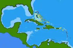 Starksia atlantica has five distinct lineages of varied geographic distribution. Barbados (BAR) and Panama (PAN) lineages are identified by COI sequencing divergence. Curaçao (CUR), Saba Bank (SAB), and Bahamas/Turks and Caicos/Belize (BAH/ TCI/BLZ) lineages lack an orbital cirrus.[4]
