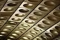 The architect of this station is Lubomír Hanel. The design is characteristic of the A line, with the ceiling and the walls tiled using anodized aluminum panels, and the pillars tiled with white marble.[2]