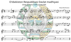 The State Anthem of Uzbekistan was officially approved on 10 December 1992 under Law "On the National Anthem of the Republic of Uzbekistan" by the Resolution of the Supreme Council of the Republic of Uzbekistan. Previously, there had been many attempts at creating a national anthem with new lyrics for Uzbekistan upon independence from the Soviet Union; the version written by well-known composer Abdulla Oripov was officially chosen in completion of the new national anthem.[1] Oripov's words were set to the tune composed by Soviet Uzbek composer Mutal Burhonov in 1947; the melody is identical to that of the Anthem of the Uzbek Soviet Socialist Republic with no subsequent changes. Uzbekistan is one of the four post-Soviet states – alongside Belarus, Russia, and Tajikistan – that continue to use the Soviet-era tune for their current anthems.